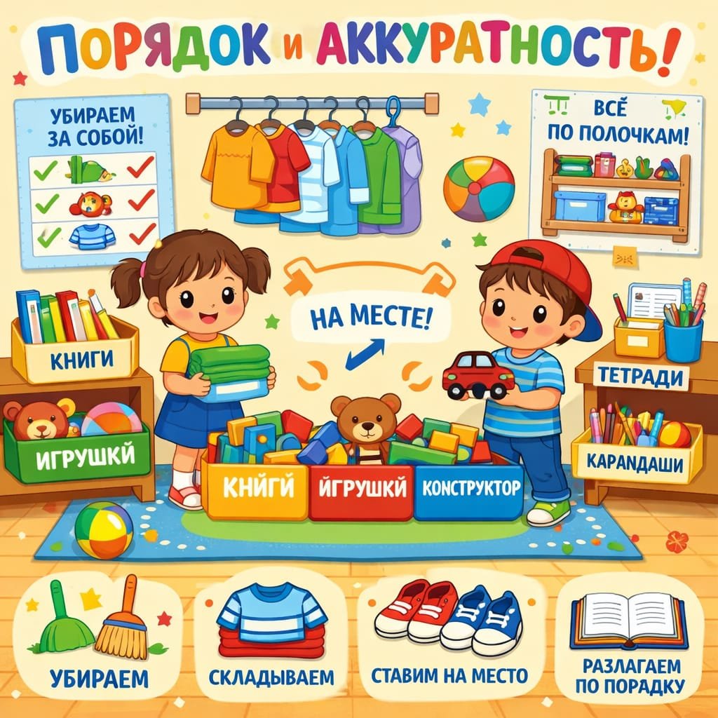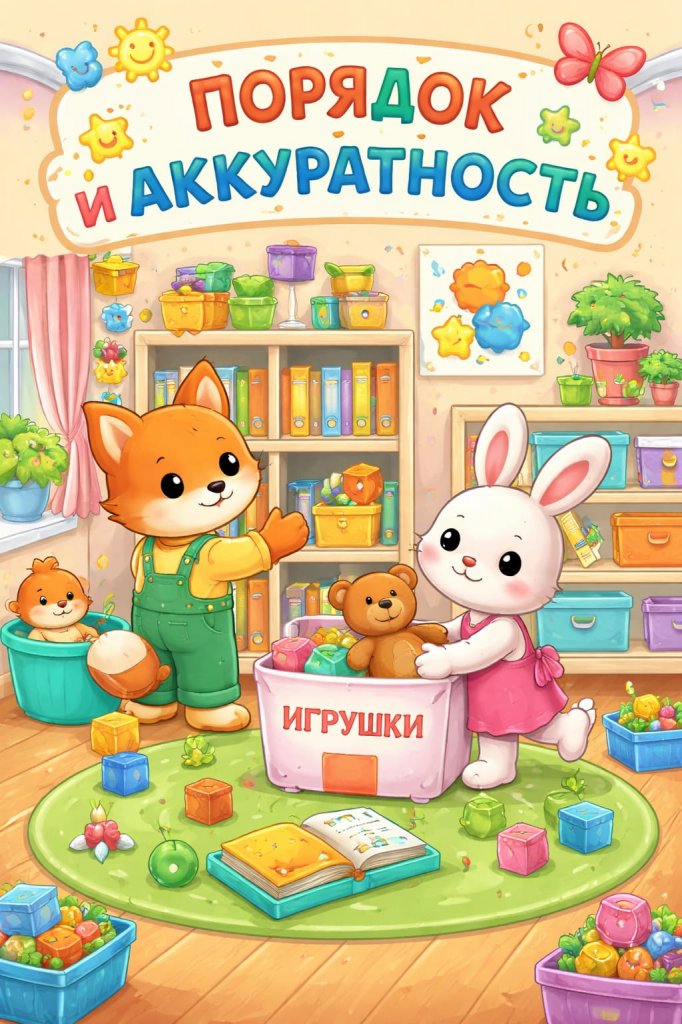 «Тәртіп пен ұқыптылық» «Балапан» ортаңғы тобындағы бірлескен еңбек Міндеттері: балаларды бірлескен еңбек әрекетіне баулу; командада жұмыс істей білуге үйрету; топтағы тәртіпсіздікті байқап, оны жоя білуге дағдыландыру. Еңбекқорлыққа тәрбиелеу.Ұқыптылыққа үйрету.